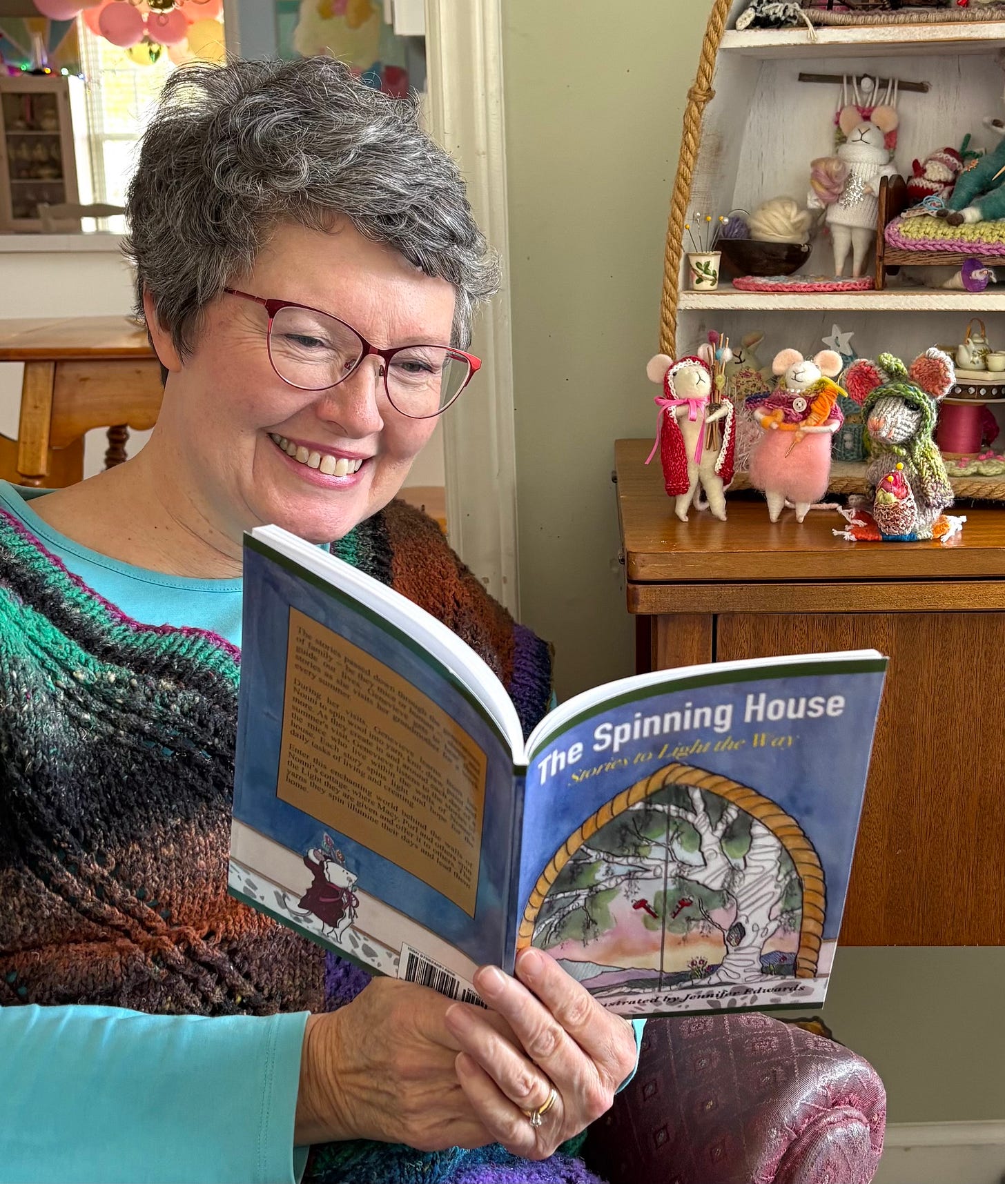 (Reading to Macy, Purl, and Marisol , the mice whose stories you can read in my recent book, The Spinning House: Stories to Light the Way)