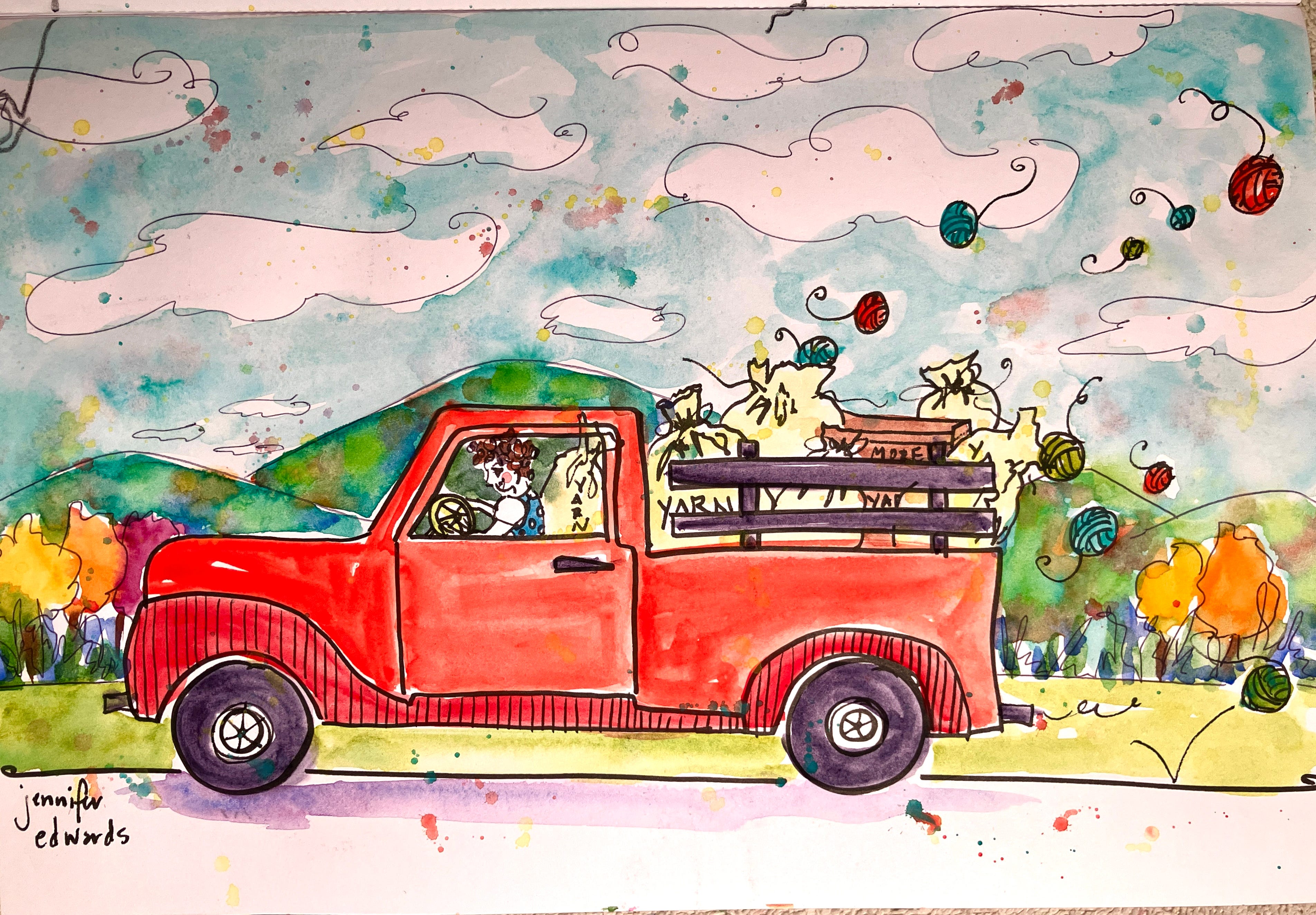 *I finally was able to sell the piano in my studio, giving me more room and allowing my drawing table to come out from the crammed corner! Woo! Hoo! This now feels much more airy and open and I find myself at my drawing table happily swooshing watercolor around or drawing illustrations or ahem…winding yarn! I love the table’s multi-purpose!