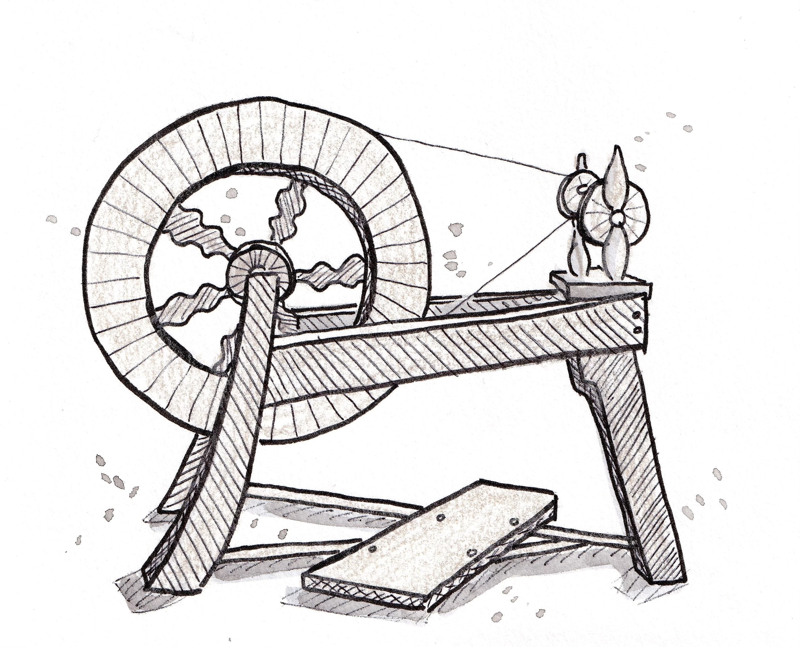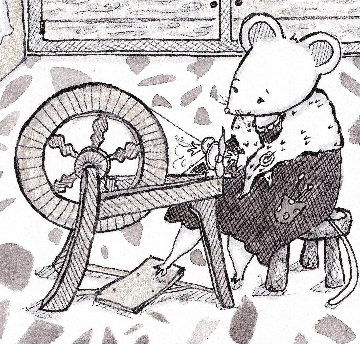I thought I’d leave you with a little snippet from my upcoming book. There are three stories within the overall storyline. One of these stories is about a great-great-grandmother mouse named Eleanor whose work is to spin fiber for sale at market. Her spinning wheel is a curious thing. Here’s a description of her wheel —