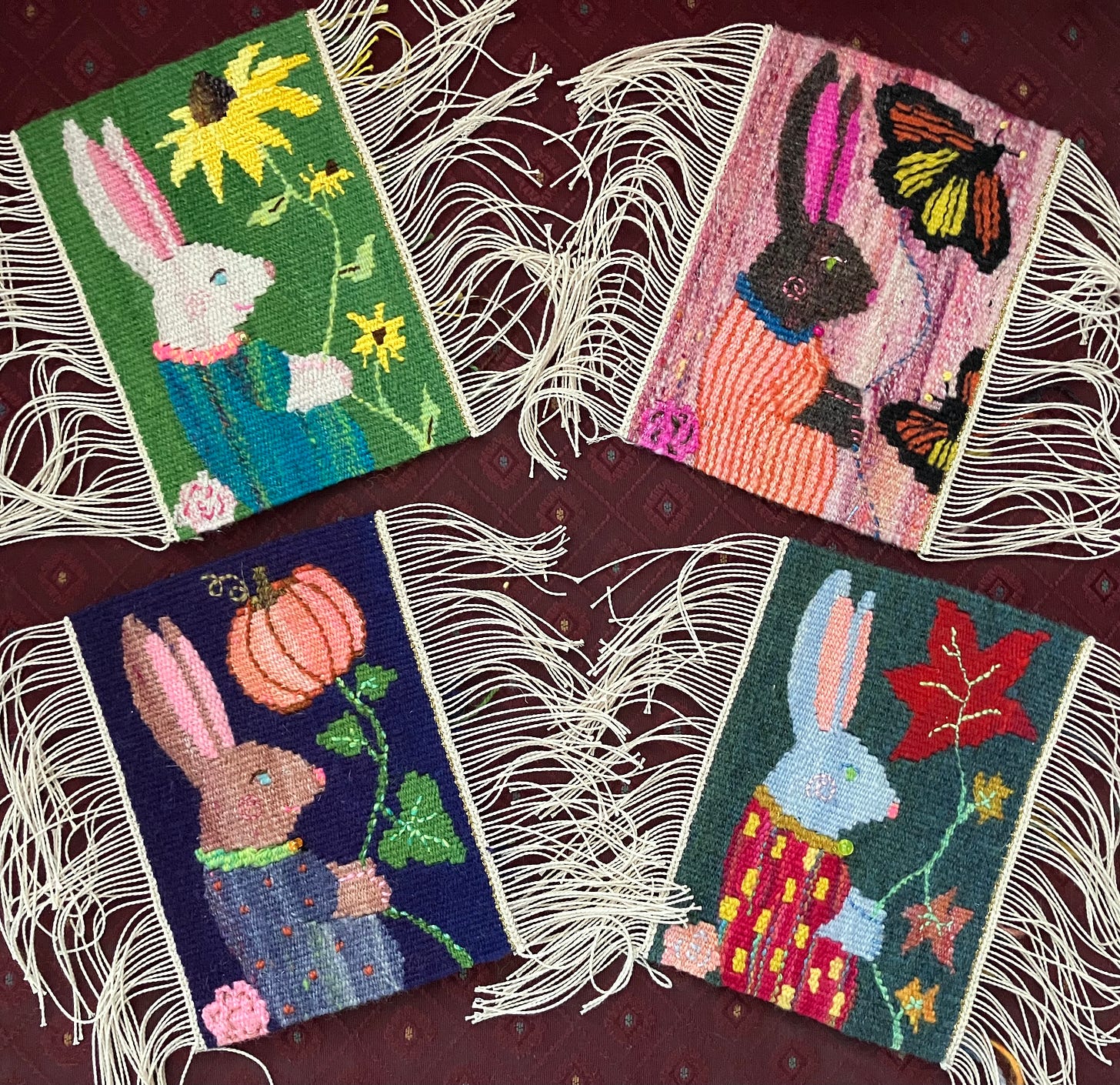 I’m not certain what I’d like to do with these twelve bunnies. One friend recommended that I write a children’s book to go along with them. They would indeed make for unique “illustrations”. Another friend through that a calendar with each bunny representing their month. I love this idea and may actually do this for a 2027 calendar! I’ve also thought of selling them off one by one. But for now, I have a heap of finishing work to weave the warp ends in place and have them ready for framing. Two of the twelve have already been framed, so only ten more to go! Ha! 😬